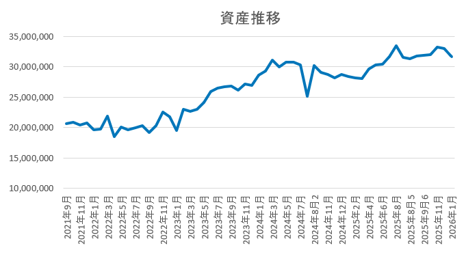 売買の影響で評価損益は綺麗な曲線ではありませんが、 長期で積み上げた結果、資産は確実に増えていきました。